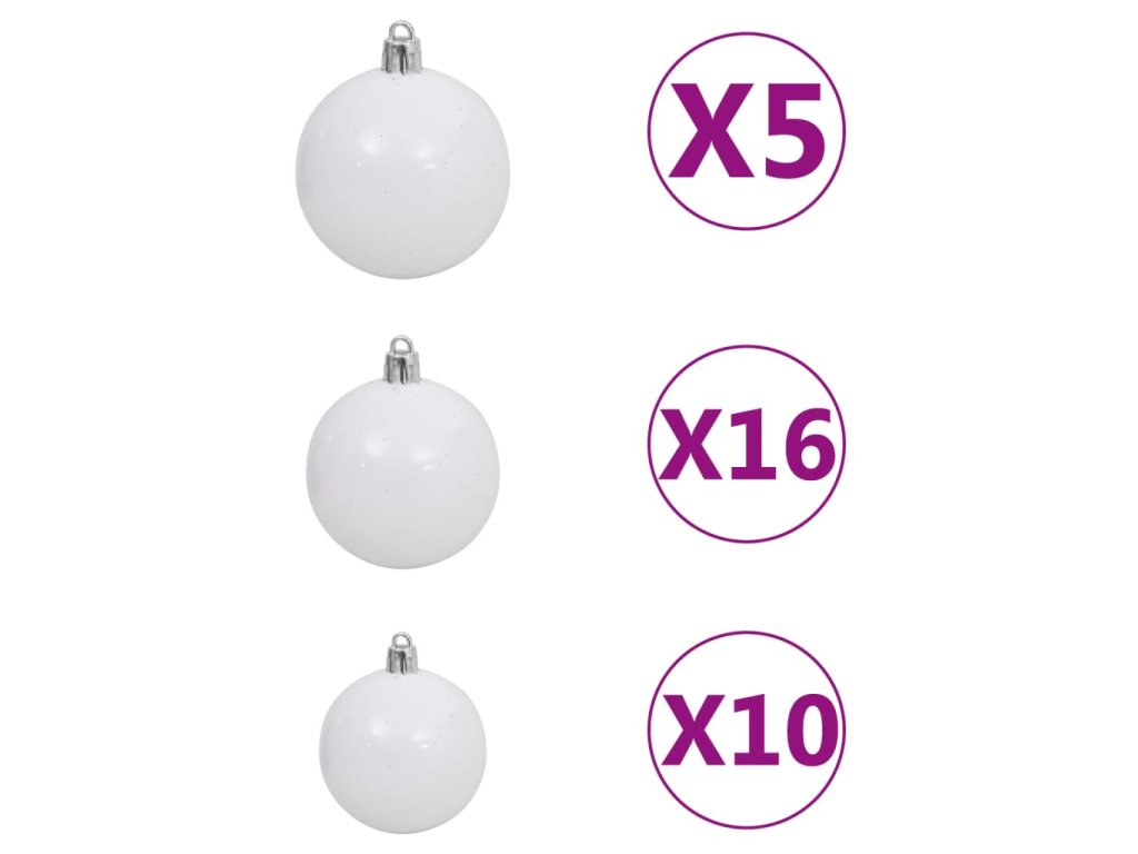 Umělý vánoční stromek s LED a sadou koulí bílý 240 cm 3077722