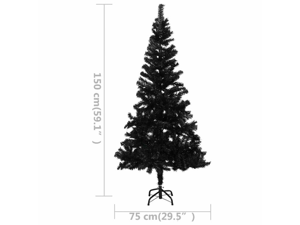 Umělý vánoční stromek s LED a sadou koulí černý 150 cm PVC 3077675