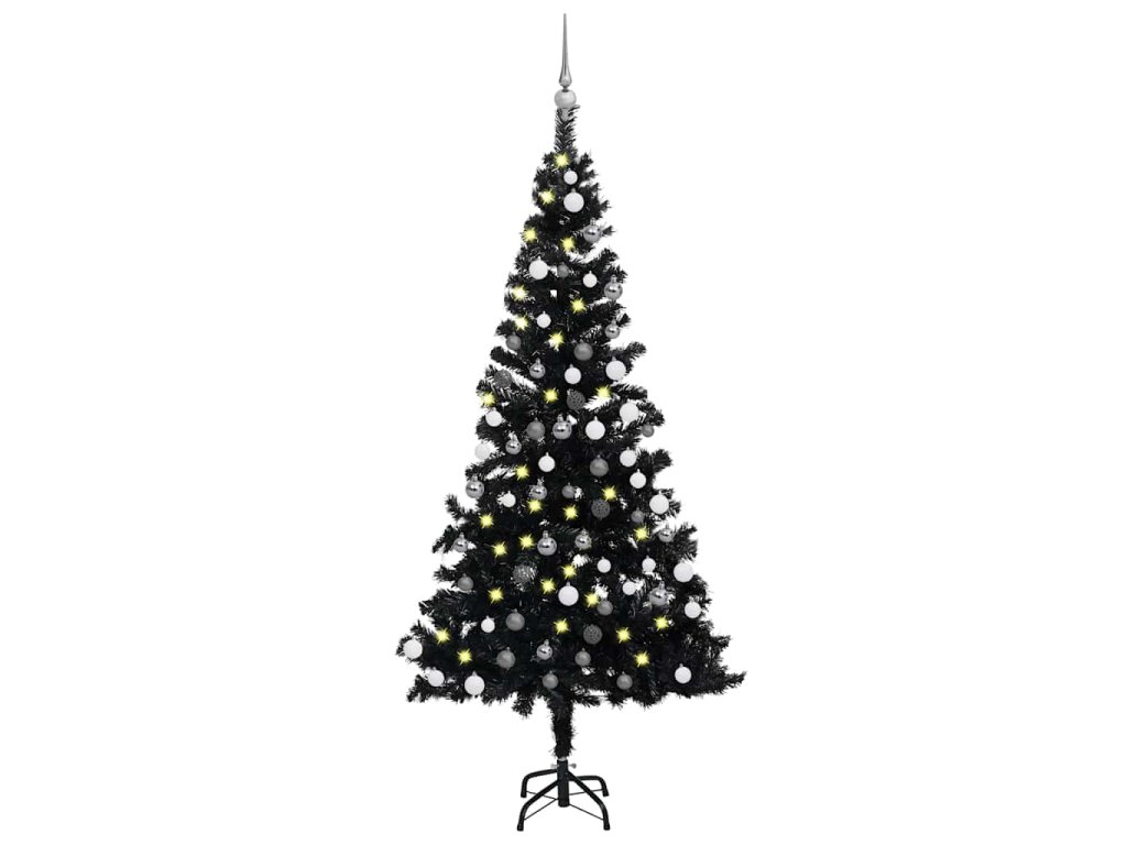 Umělý vánoční stromek s LED a sadou koulí černý 180 cm PVC 3077676