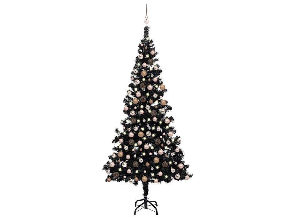 Umělý vánoční stromek s LED a sadou koulí černý 210 cm PVC 3077591