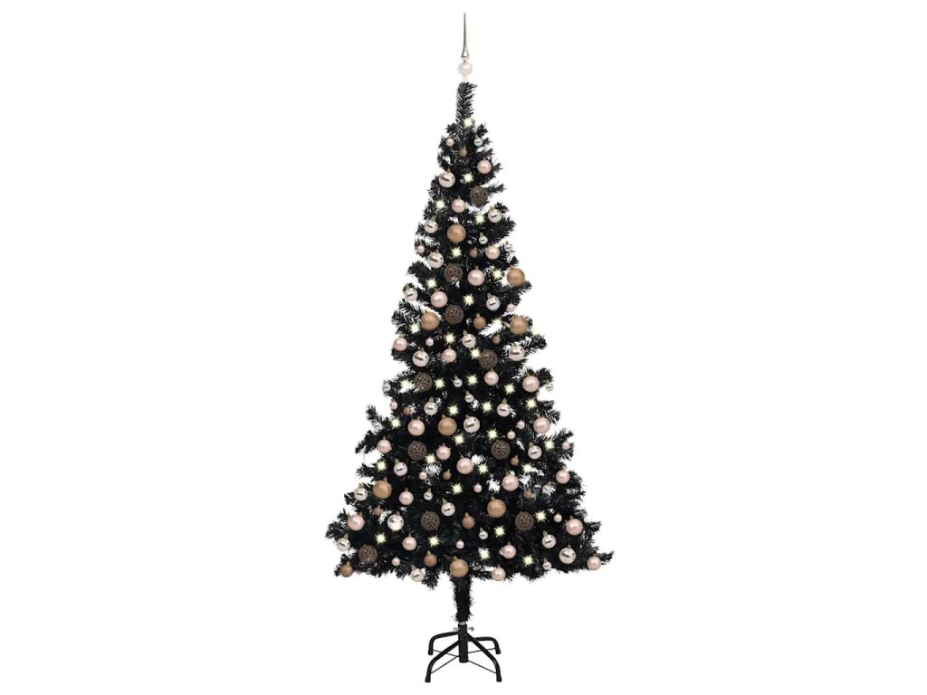 Umělý vánoční stromek s LED a sadou koulí černý 240 cm PVC 3077592