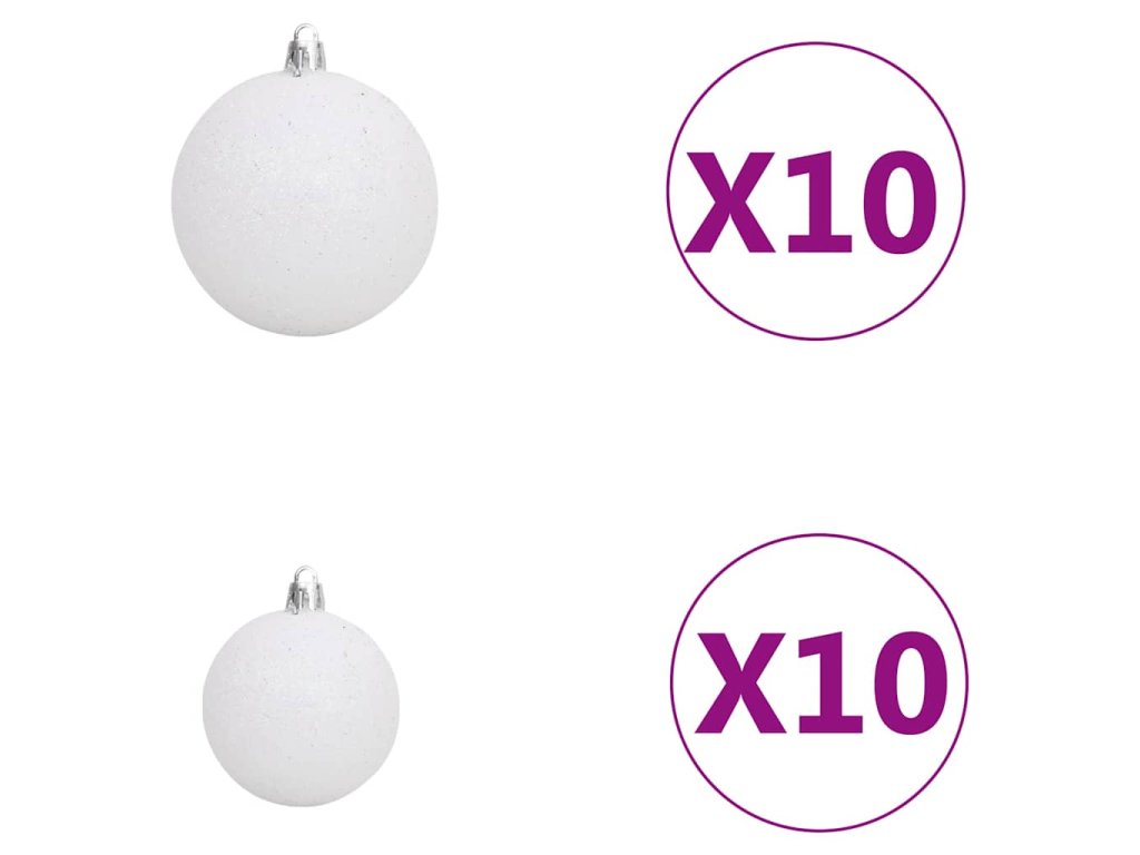 - Barva koulí: lesklá bílá, třpytivá bílá, lesklá šedá a třpytivá šedá