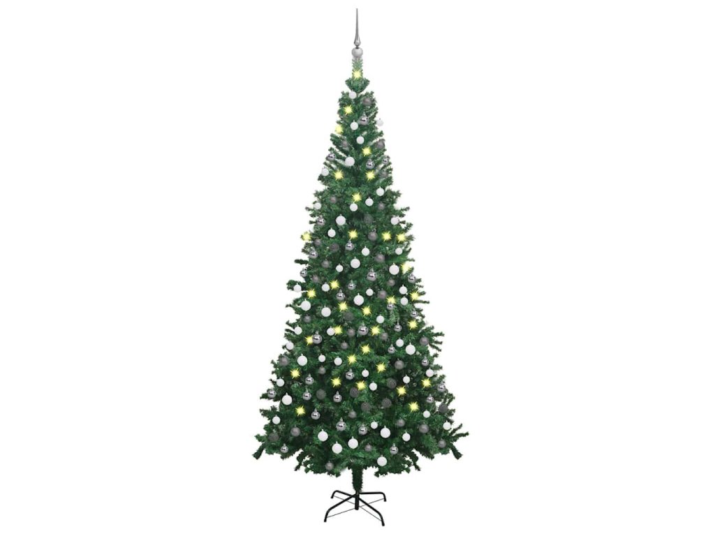 Umělý vánoční stromek s LED a sadou koulí L 240 cm zelený 3077663