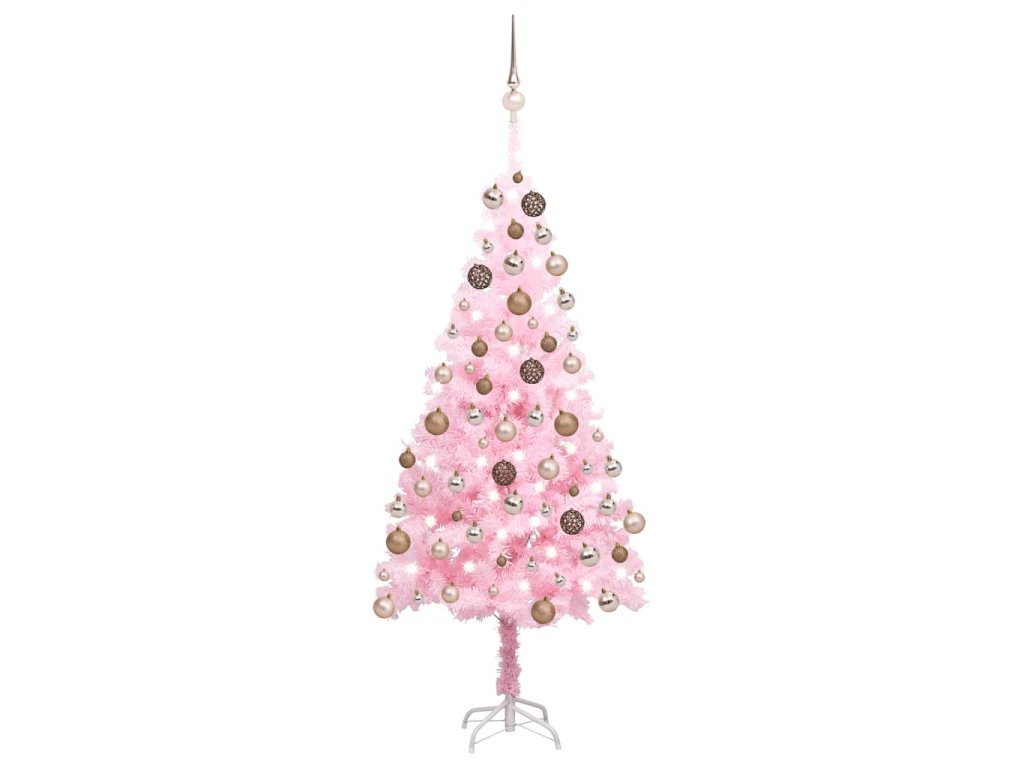 Umělý vánoční stromek s LED a sadou koulí růžový 150 cm PVC 3077584