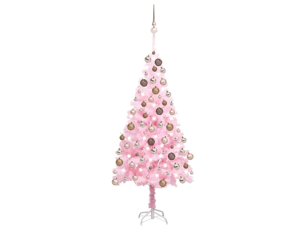 Umělý vánoční stromek s LED a sadou koulí růžový 180 cm PVC 3077585