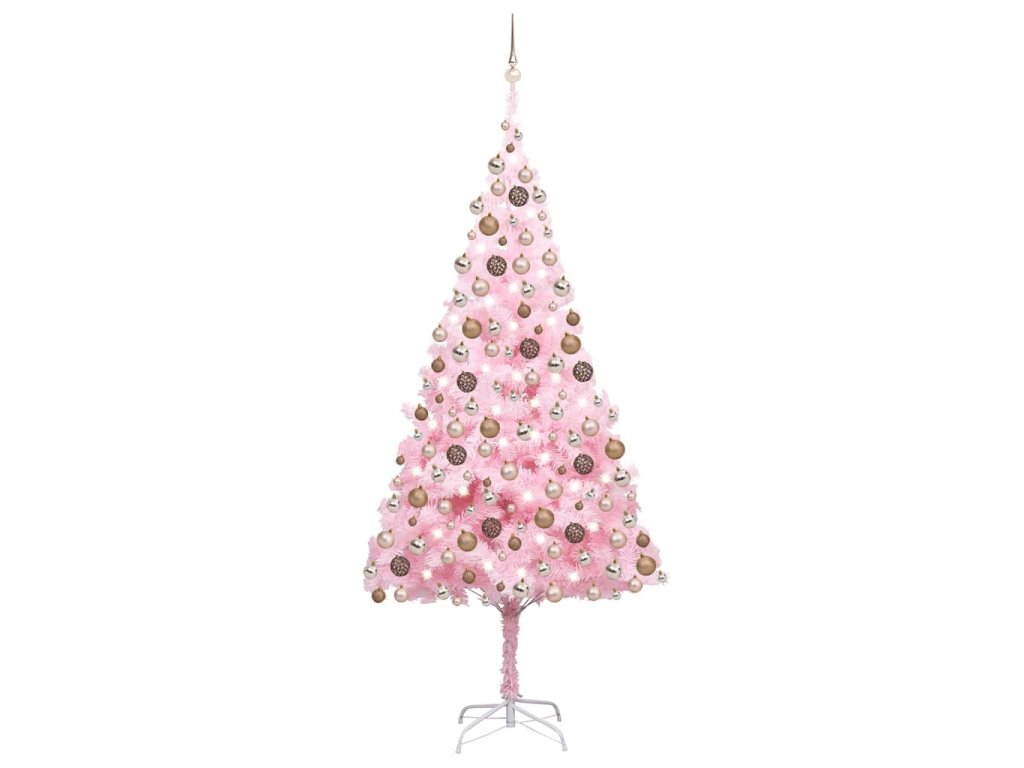 Umělý vánoční stromek s LED a sadou koulí růžový 240 cm PVC 3077587