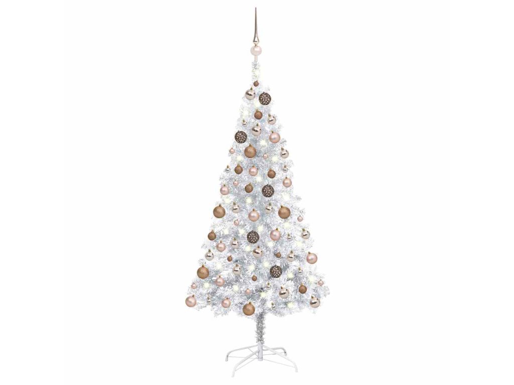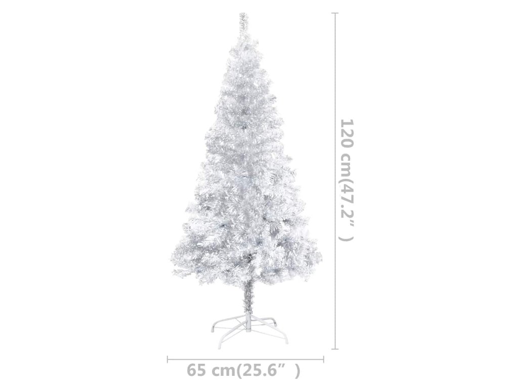 Umělý vánoční stromek s LED a sadou koulí stříbrný 120 cm PET 3077608