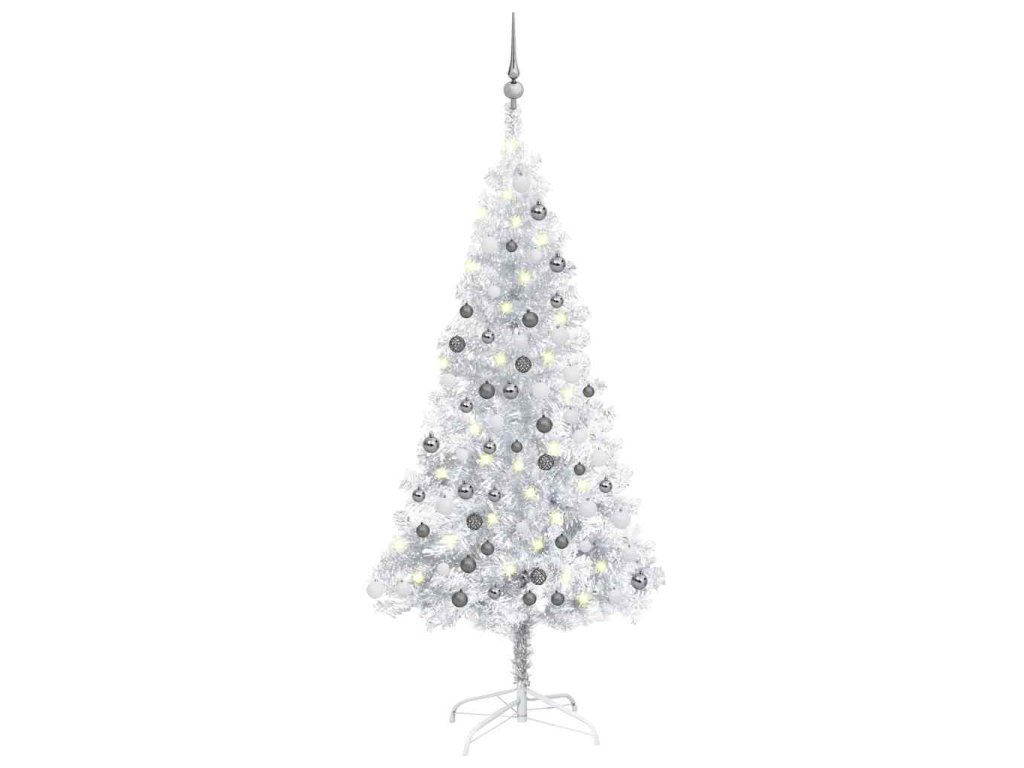 Umělý vánoční stromek s LED a sadou koulí stříbrný 120 cm PET 3077694