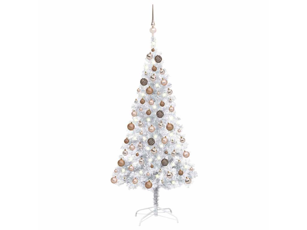 Umělý vánoční stromek s LED a sadou koulí stříbrný 150 cm PET 3077609