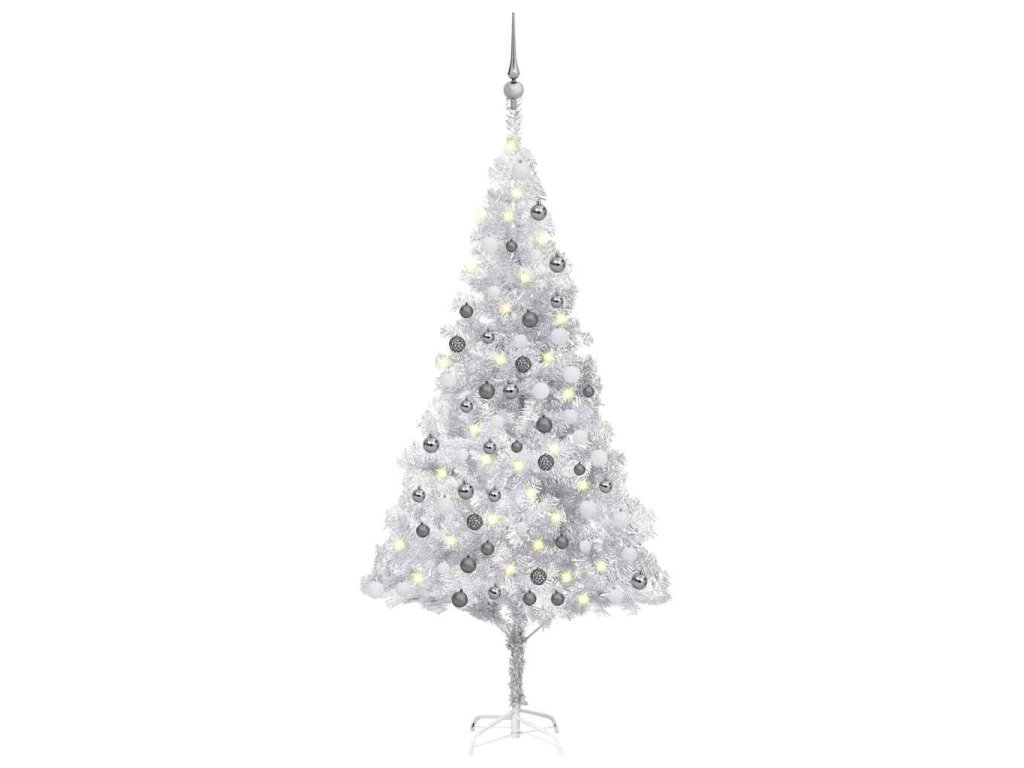 Umělý vánoční stromek s LED a sadou koulí stříbrný 180 cm PET 3077696
