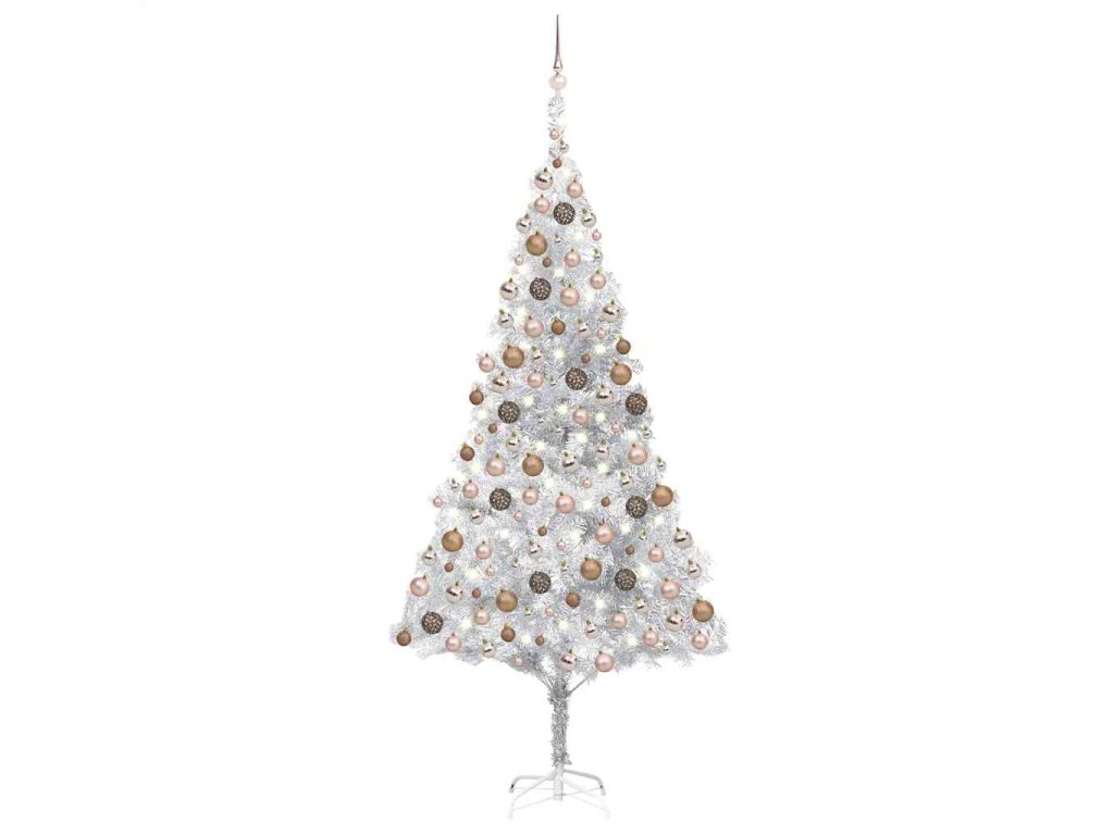 Umělý vánoční stromek s LED a sadou koulí stříbrný 210 cm PET 3077611