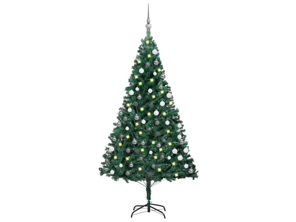 Umělý vánoční stromek s LED a sadou koulí zelený 180 cm PVC 3077708