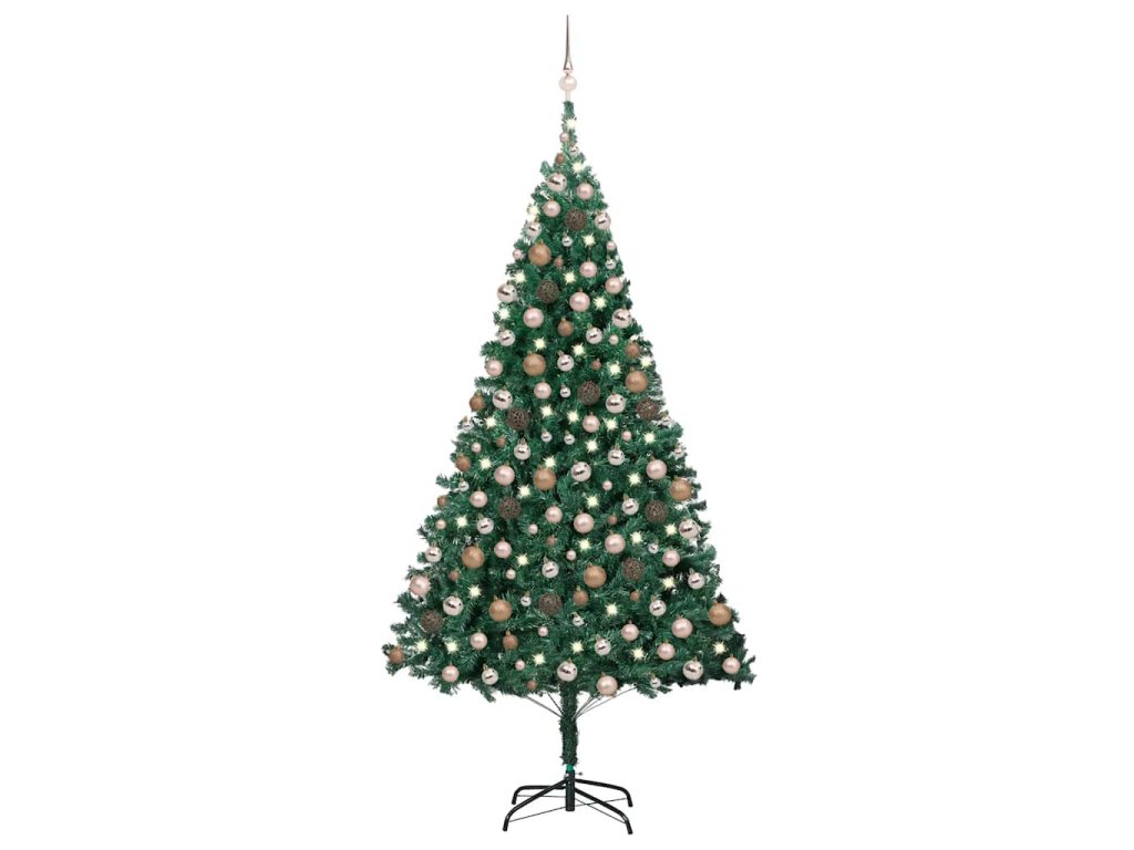 Umělý vánoční stromek s LED a sadou koulí zelený 210 cm PVC 3077623