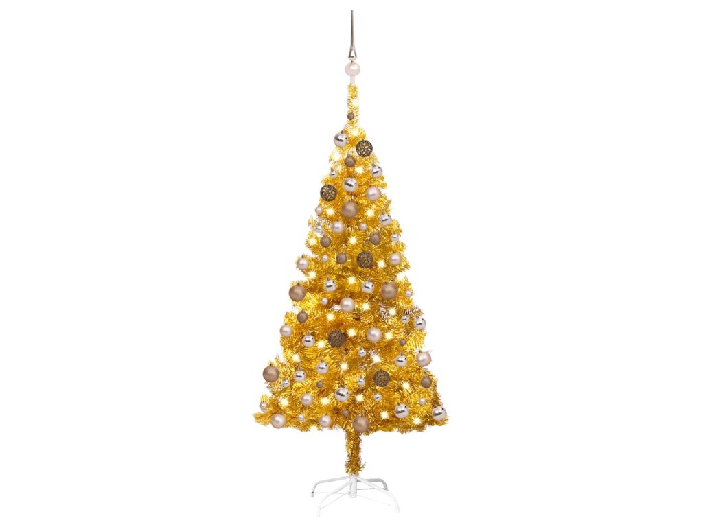 Umělý vánoční stromek s LED a sadou koulí zlatý 120 cm PET 3077603