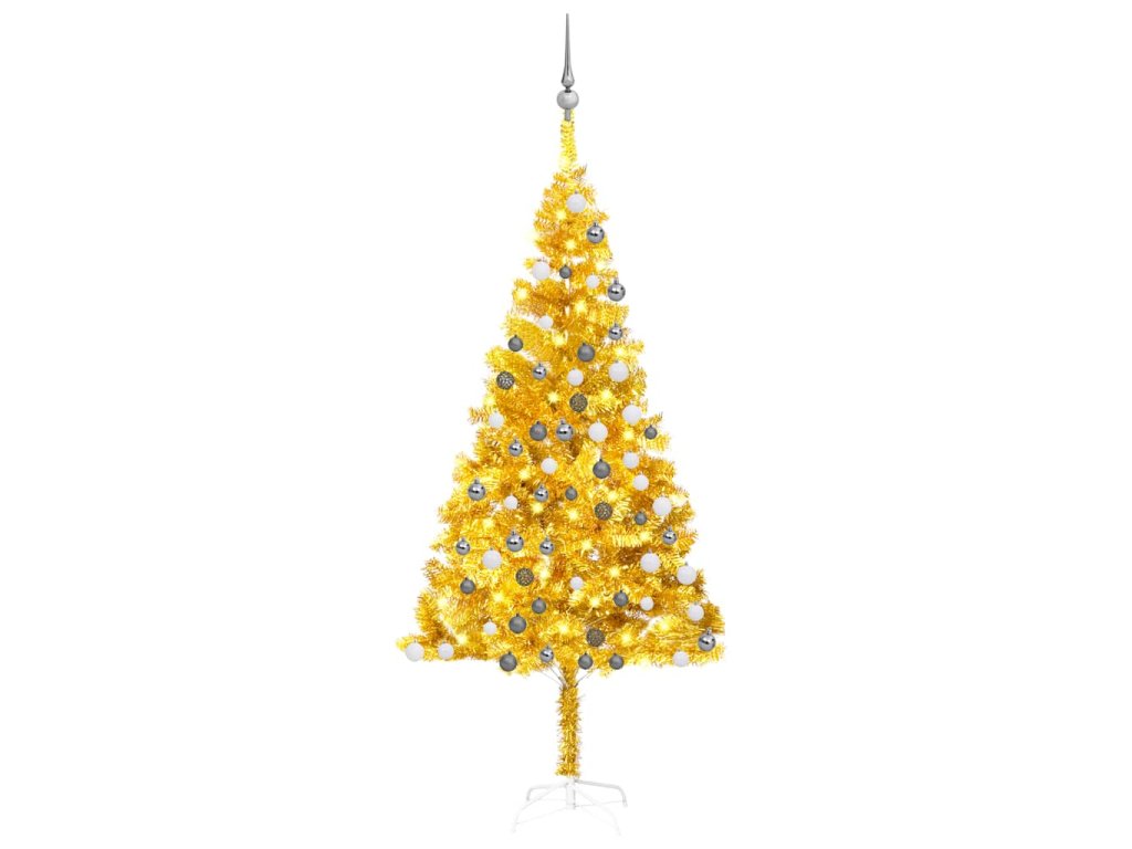 Umělý vánoční stromek s LED a sadou koulí zlatý 180 cm PET 3077691
