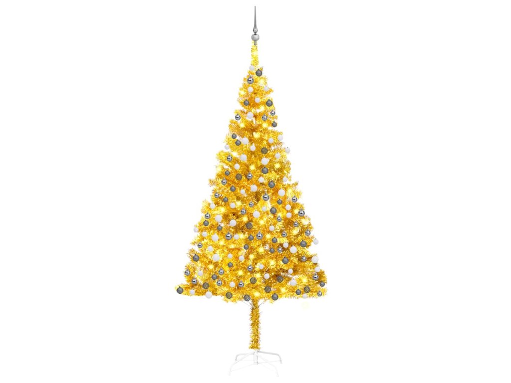 Umělý vánoční stromek s LED a sadou koulí zlatý 210 cm PET 3077692