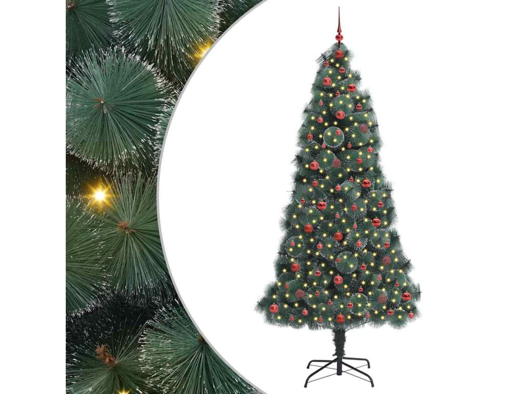 Umělý vánoční stromek s osvětlením a sadou koulí Zelená 240 cm 3396190