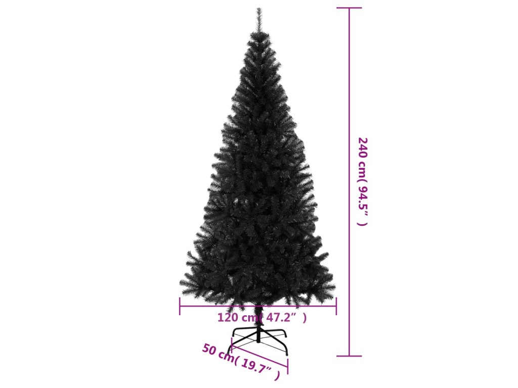 Umělý vánoční stromek se stojanem černý 240 cm PVC 329180