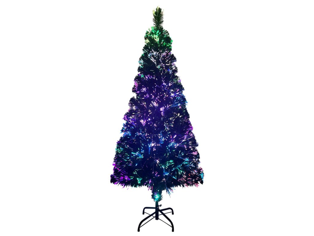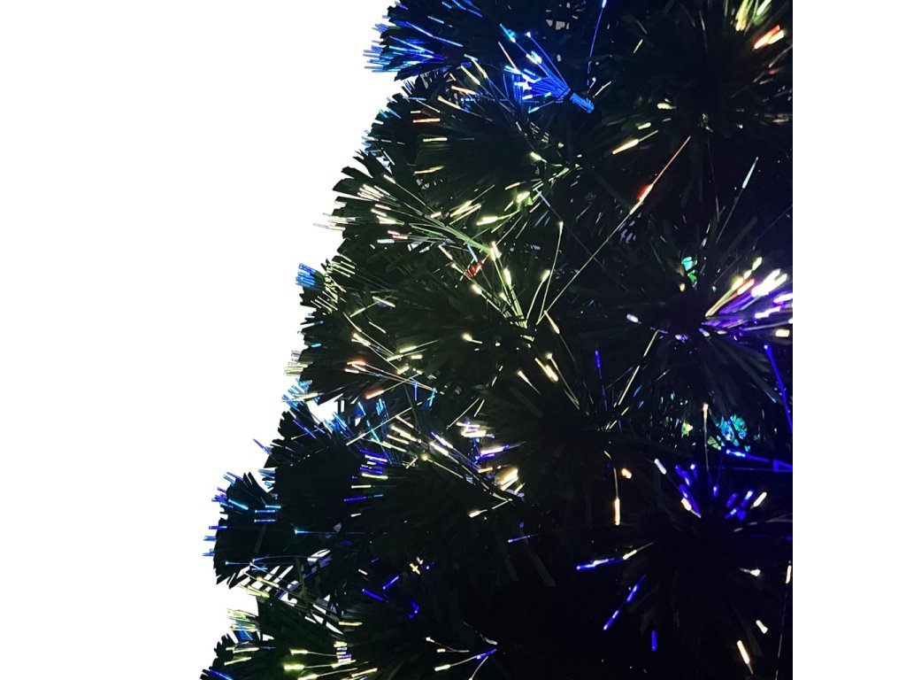 Tento půvabný vánoční stromek je vyrobený z PVC a optického vlákna, přičemž svým tvarem i vzhledem působí úplně jako živý. Ocelový stojan zaručuje výtečnou stabilitu. Když ho zapojíte do elektřiny, rozsvítí se v pěti barvách: modré, fialové, červené, zelené a oranžové. Vánoční stromek lze používat rok co rok, ve srovnání s živým stromem jde tedy o úspornější variantu. Navíc je vhodný pro vnitřní i zastřešené venkovní použití.