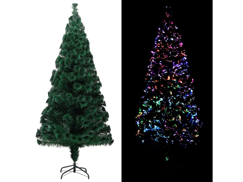 Tento půvabný vánoční stromek je vyrobený z PVC a optického vlákna, přičemž svým tvarem i vzhledem působí úplně jako živý. Ocelový stojan zaručuje výtečnou stabilitu. Když ho zapojíte do elektřiny, rozsvítí se v pěti barvách: modré, fialové, červené, zelené a oranžové. Vánoční stromek lze používat rok co rok, ve srovnání s živým stromem jde tedy o úspornější variantu. Navíc je vhodný pro vnitřní i zastřešené venkovní použití.