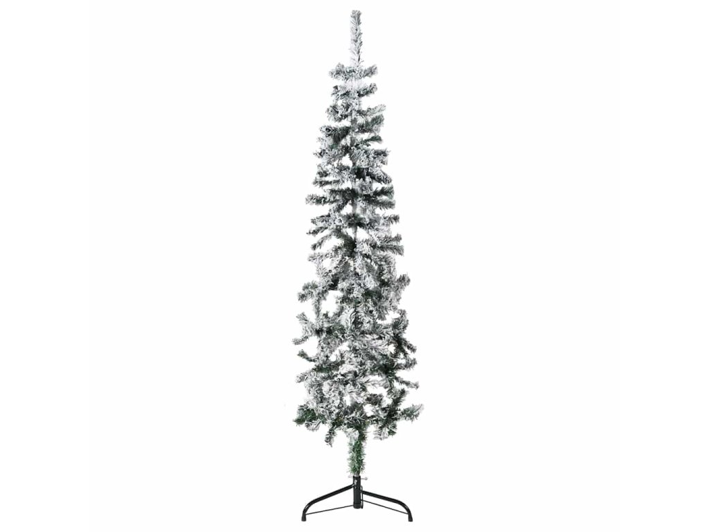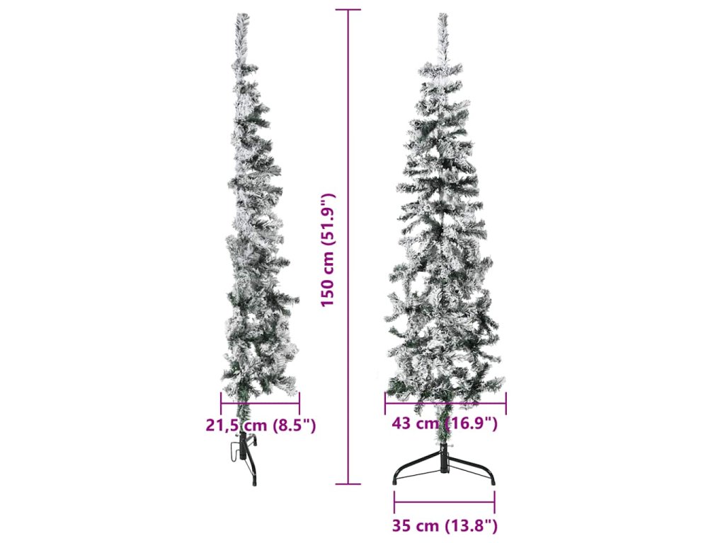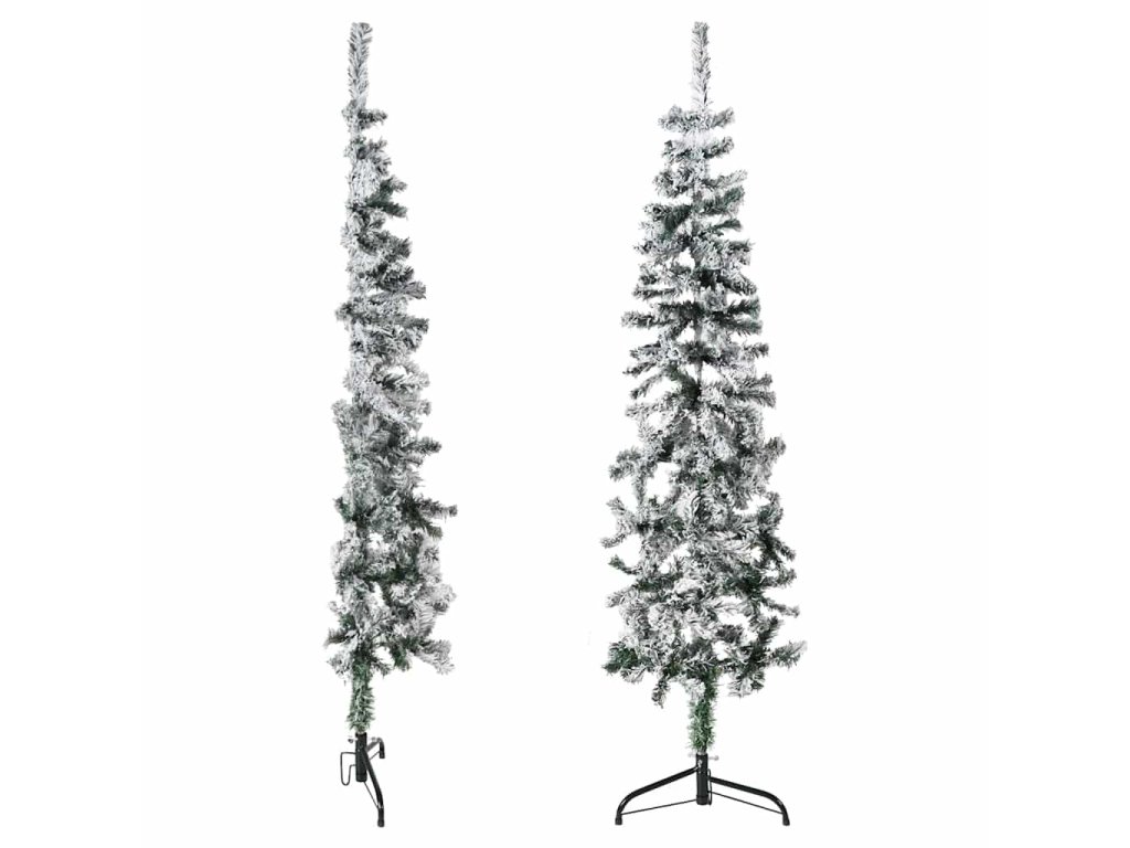 Úzký umělý poloviční vánoční stromek se sněhem 150 cm 344605