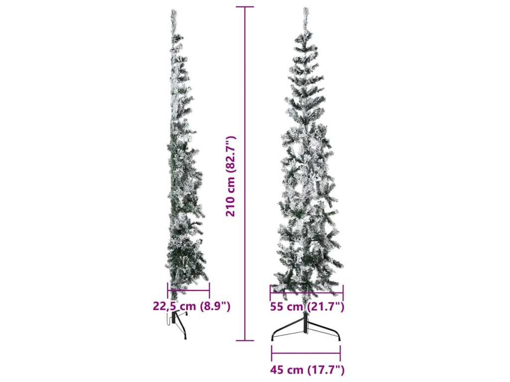 Úzký umělý poloviční vánoční stromek se sněhem 210 cm 344607