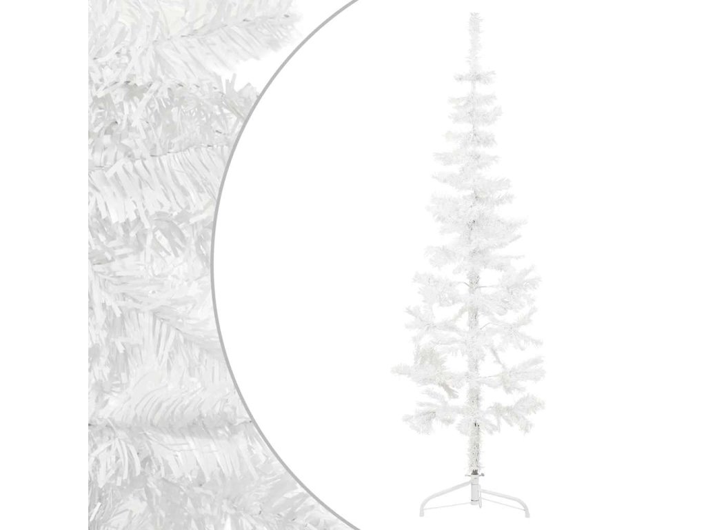 Úzký umělý poloviční vánoční stromek se stojanem bílý 150 cm 344565