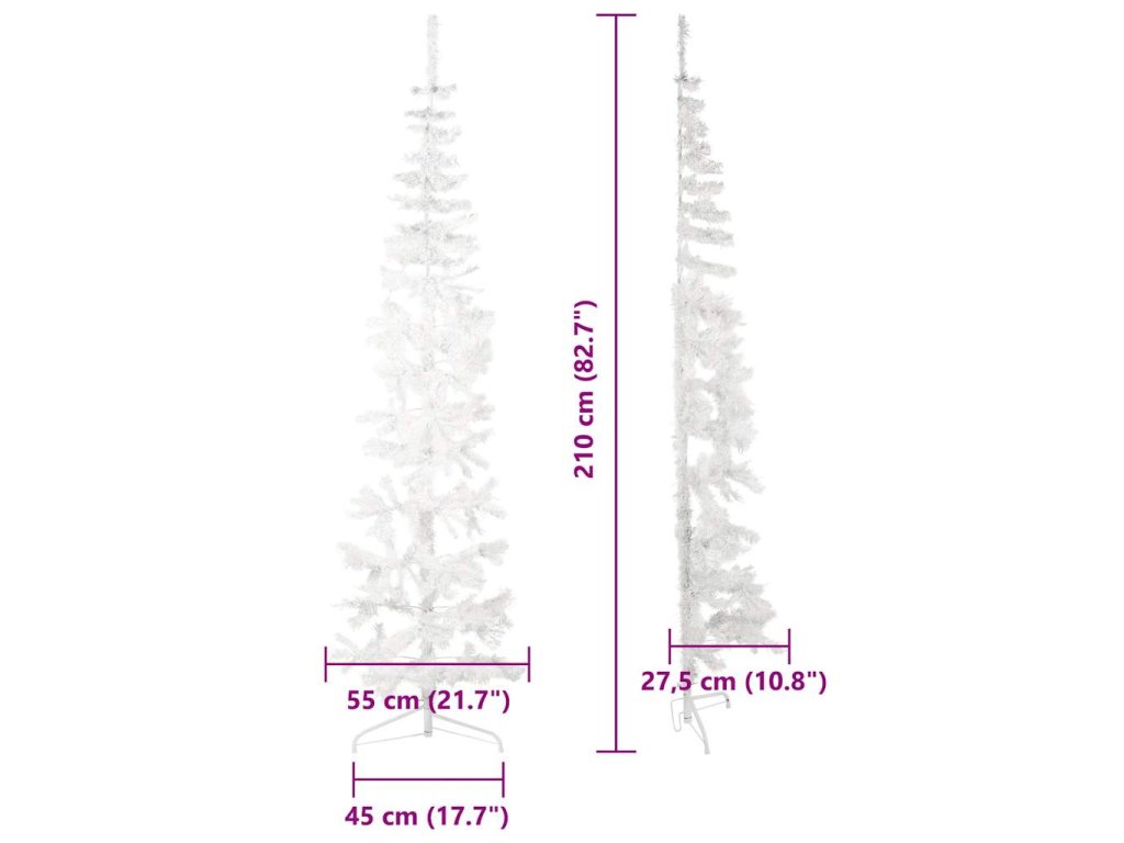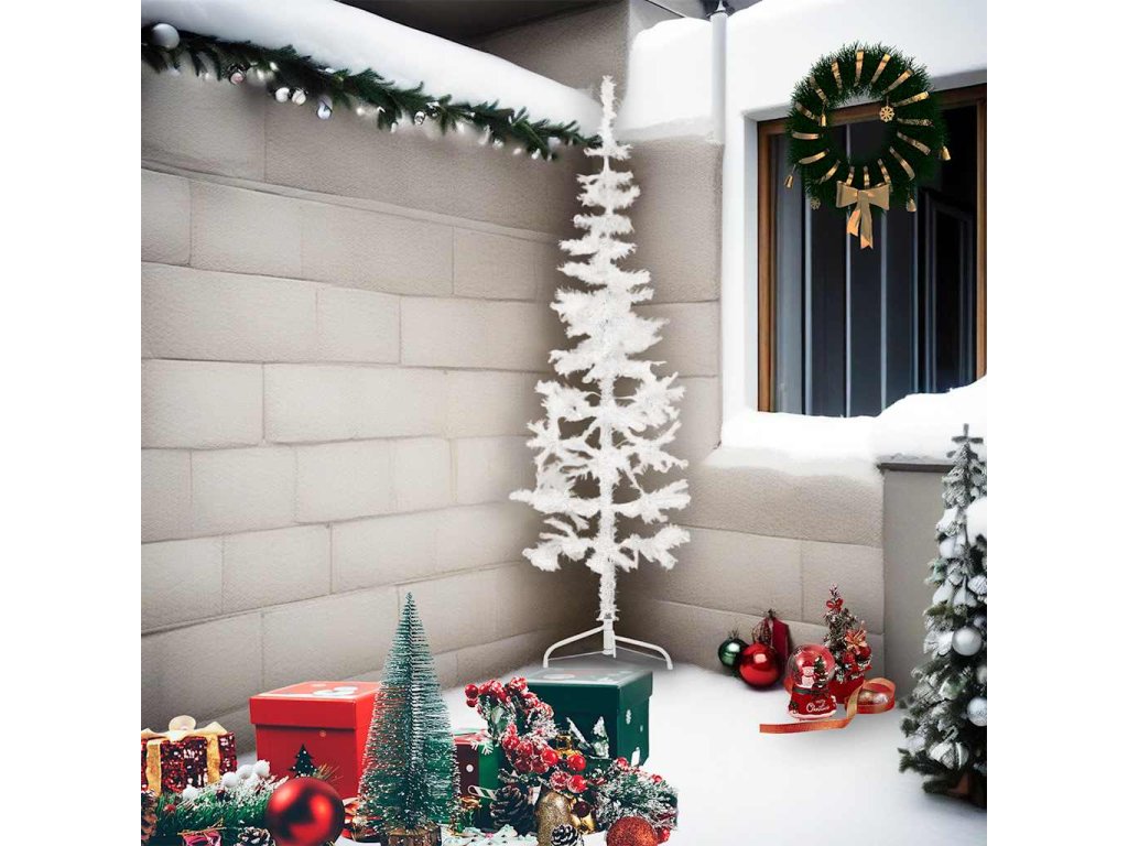Úzký umělý poloviční vánoční stromek se stojanem bílý 210 cm 344567