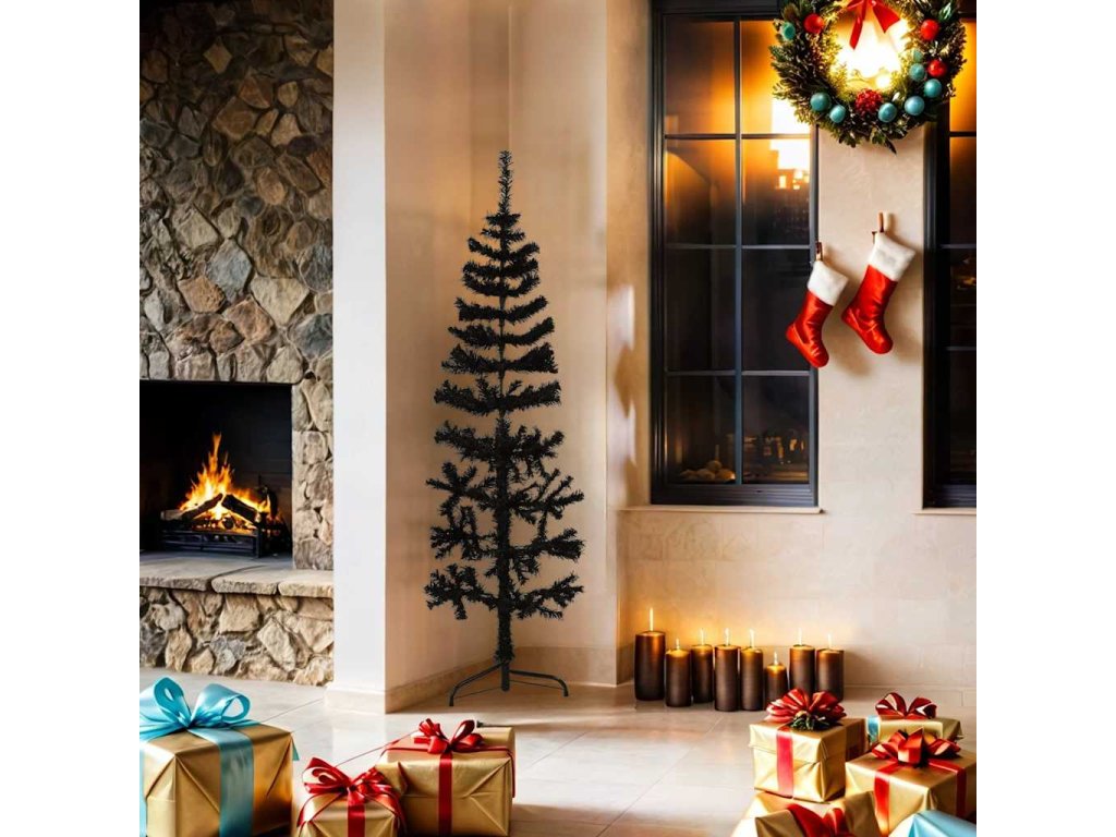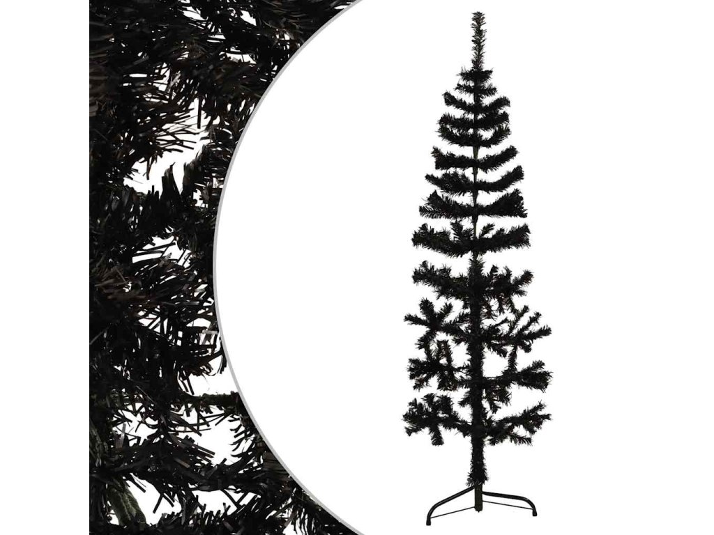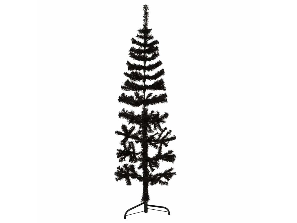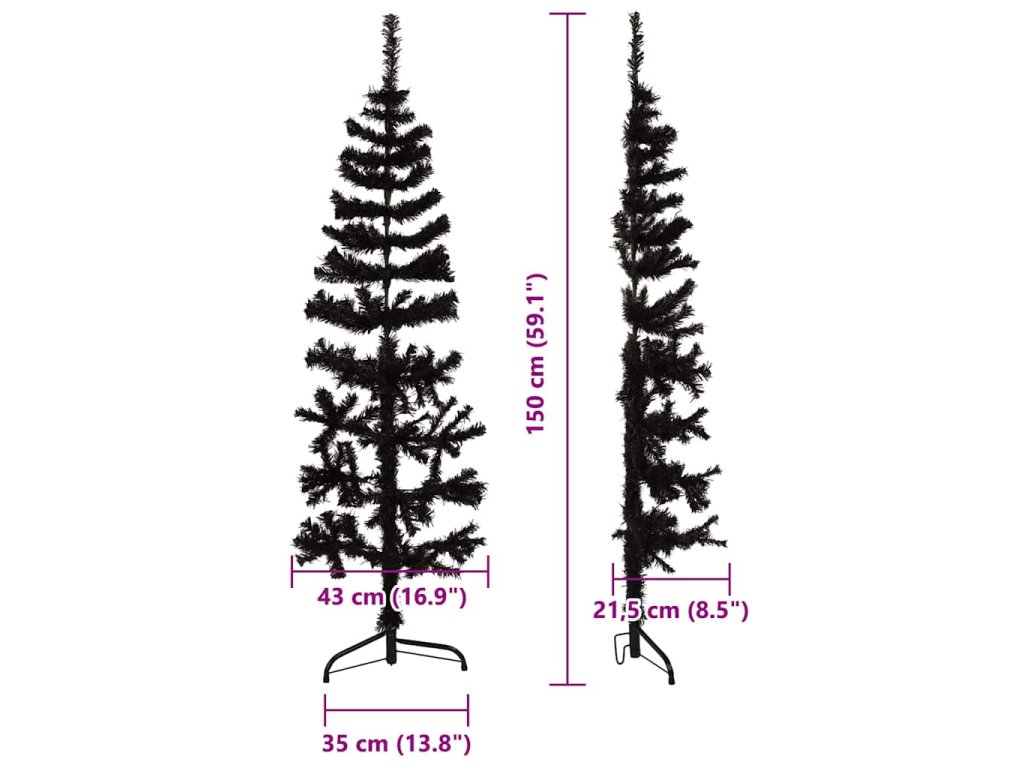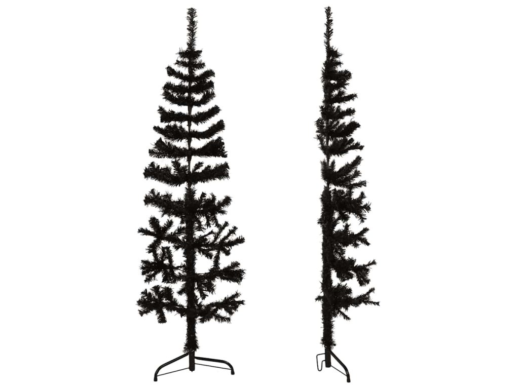 Úzký umělý poloviční vánoční stromek se stojanem černý 150 cm 344575