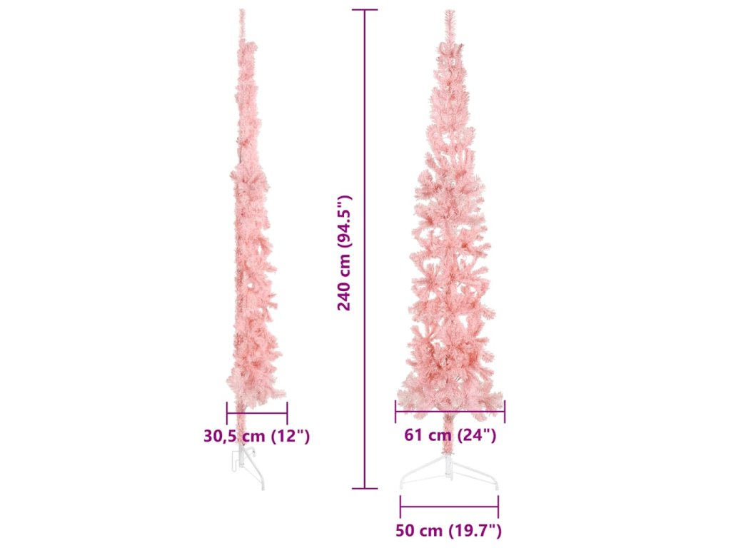 Úzký umělý poloviční vánoční stromek se stojanem růžový 240 cm 344573