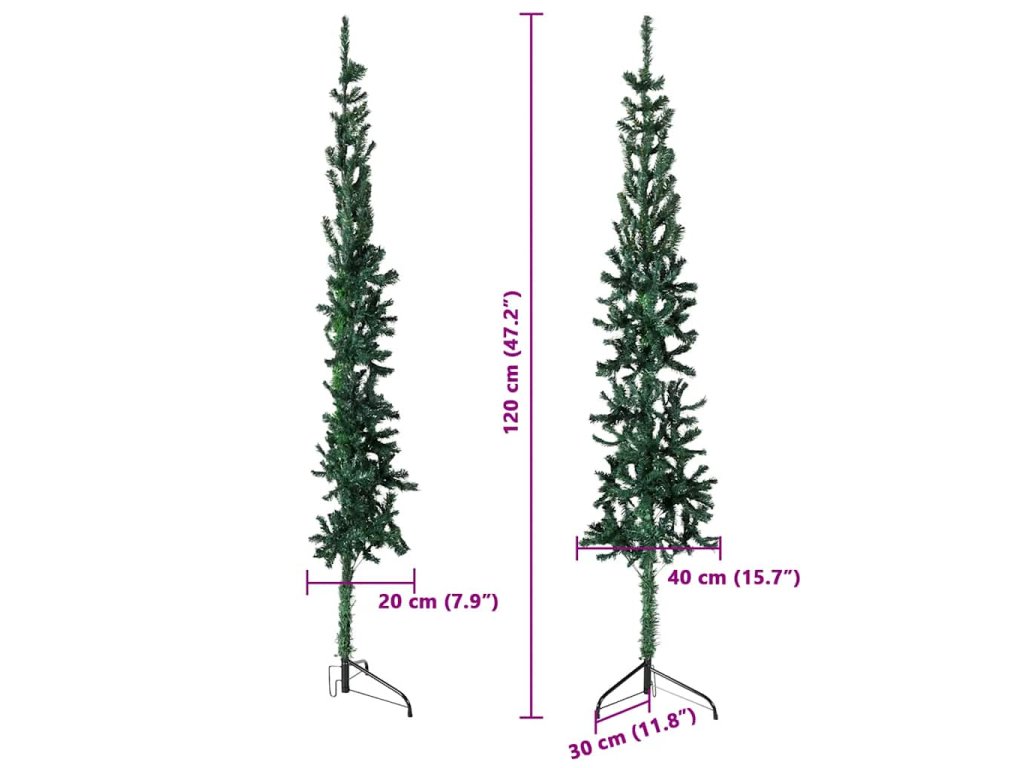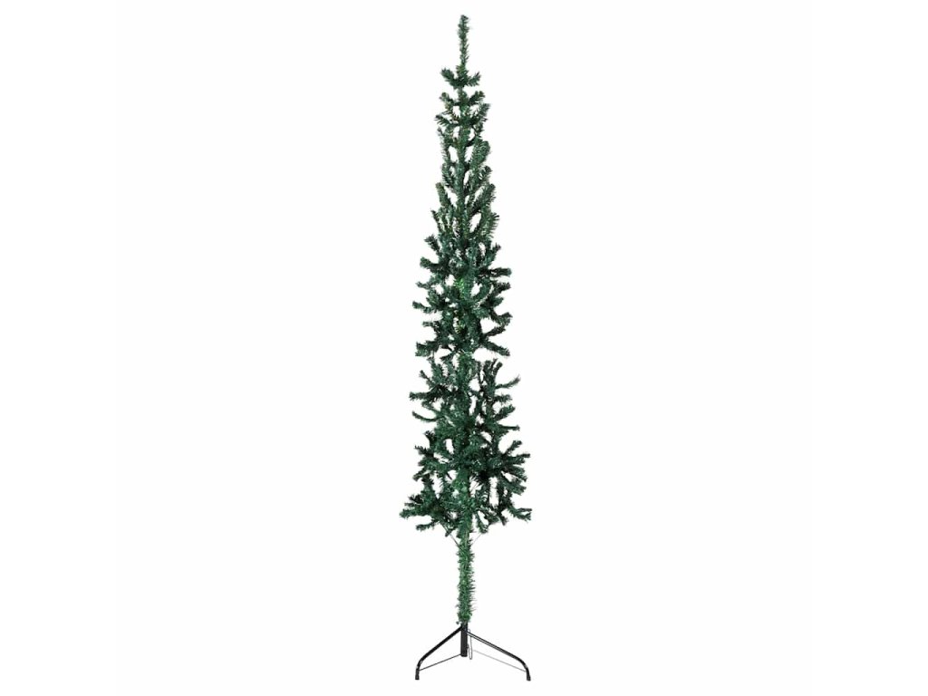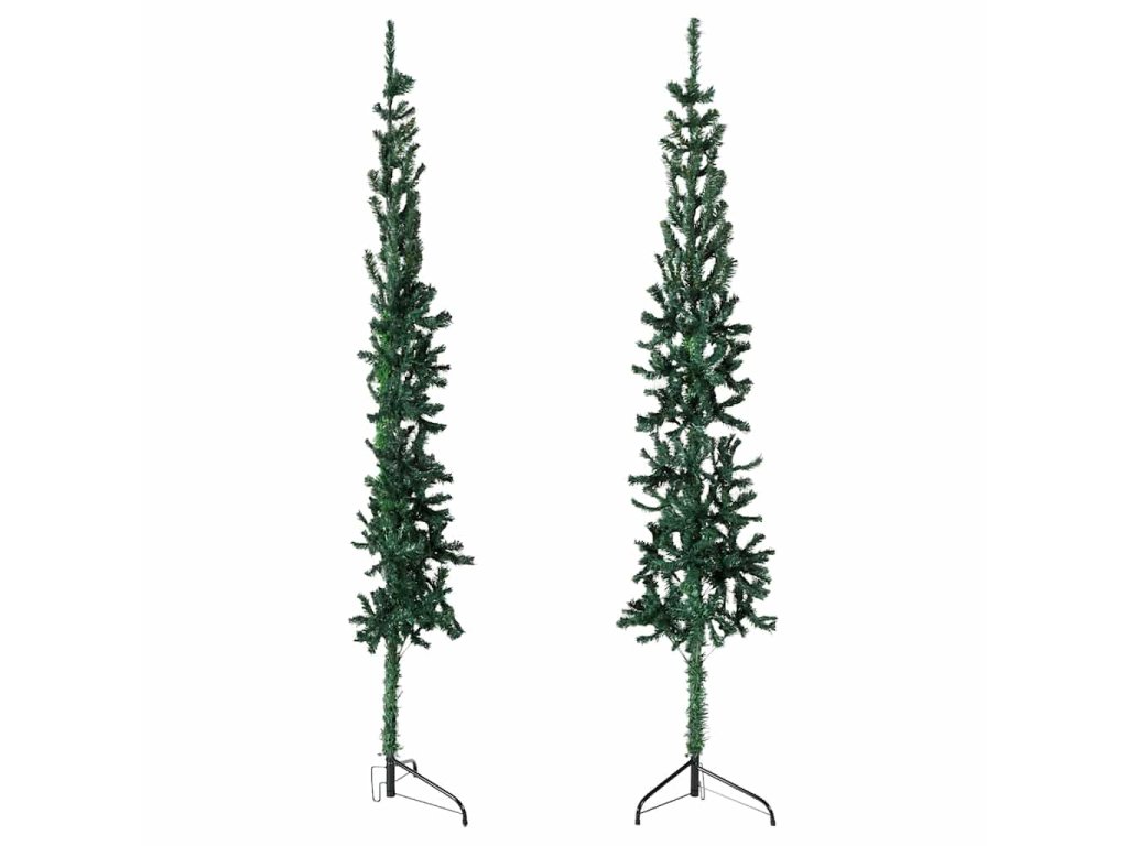 Úzký umělý poloviční vánoční stromek se stojanem zelený 120 cm 344599