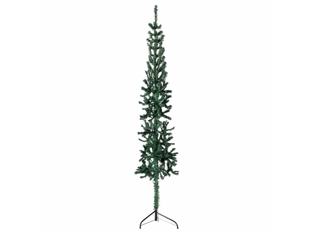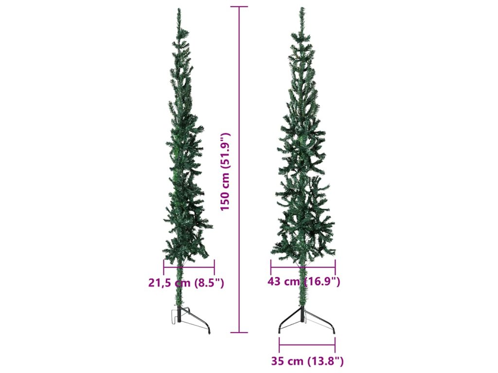 Úzký umělý poloviční vánoční stromek se stojanem zelený 150 cm 344600