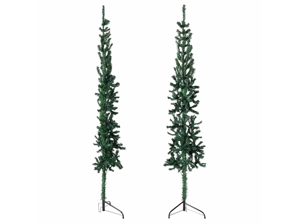 Úzký umělý poloviční vánoční stromek se stojanem zelený 210 cm 344602