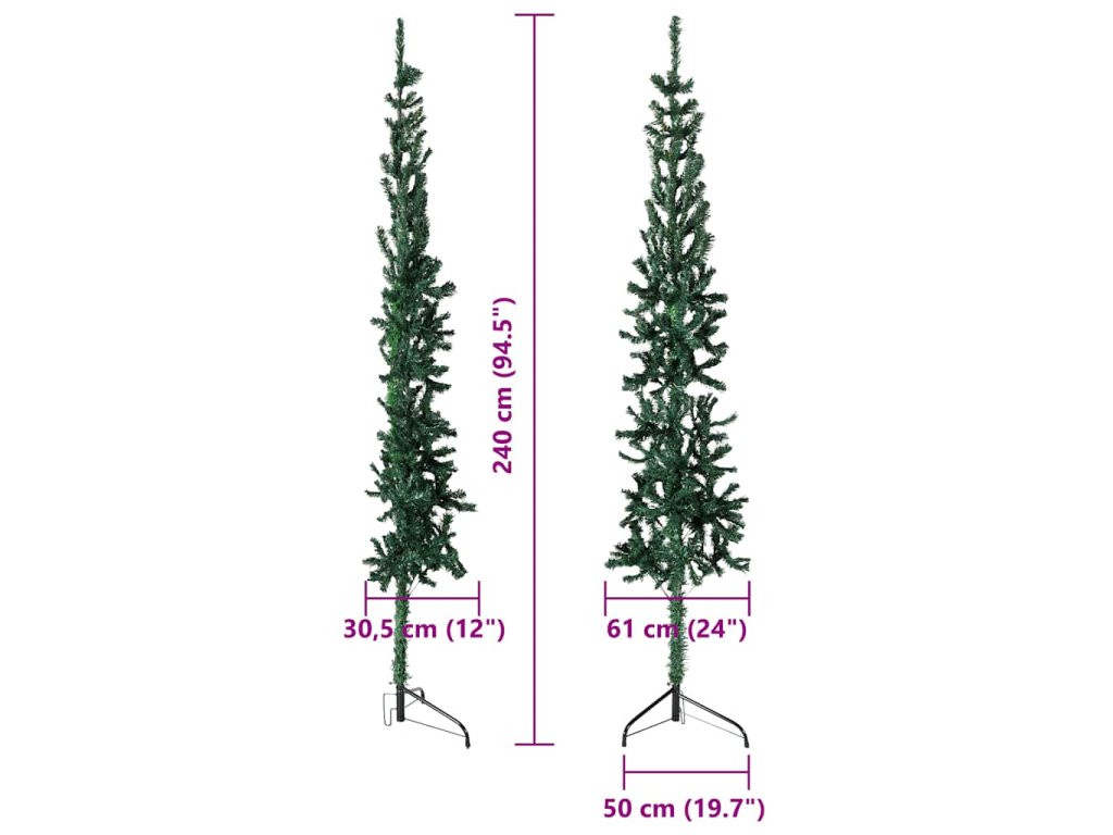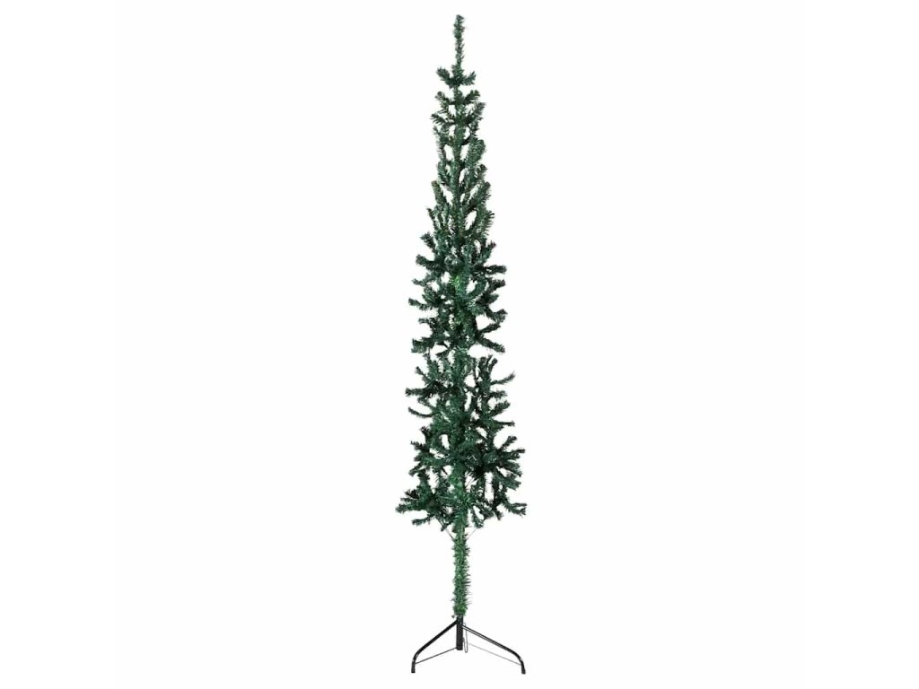 Úzký umělý poloviční vánoční stromek se stojanem zelený 240 cm 344603