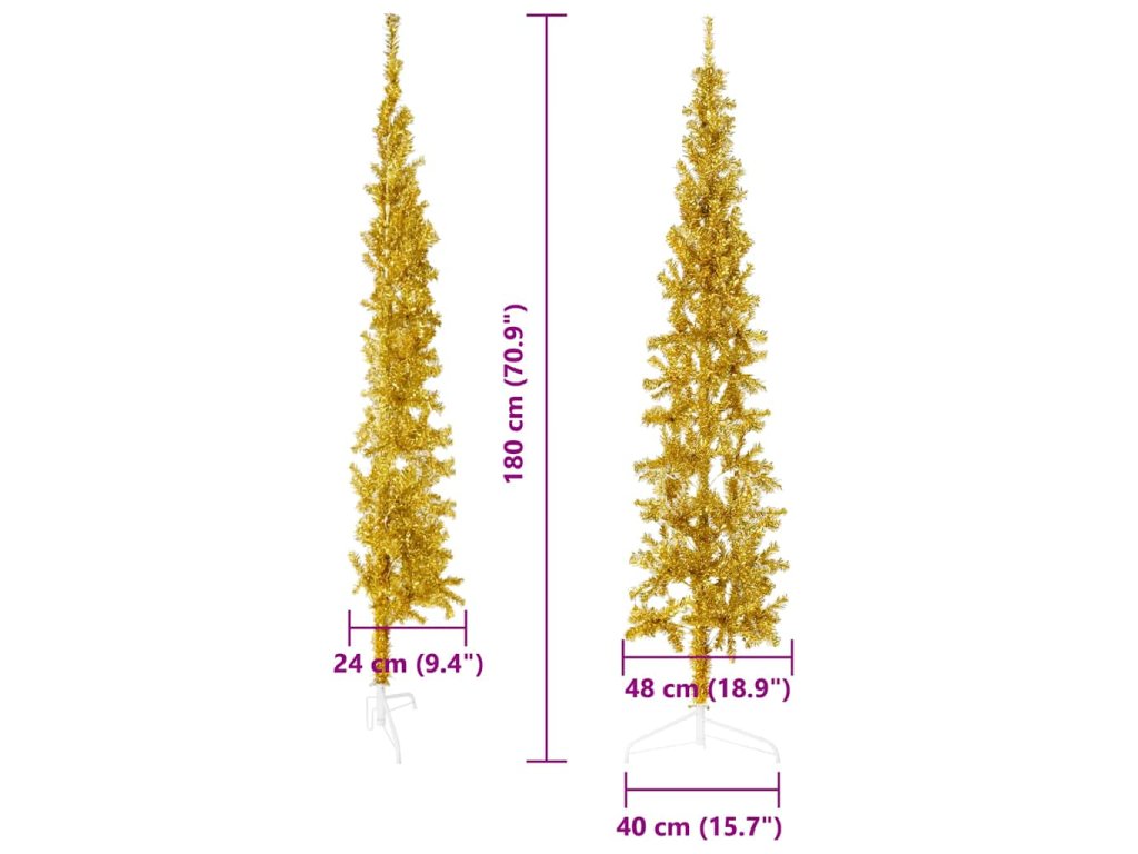 Úzký umělý poloviční vánoční stromek se stojanem zlatý 180 cm 344591