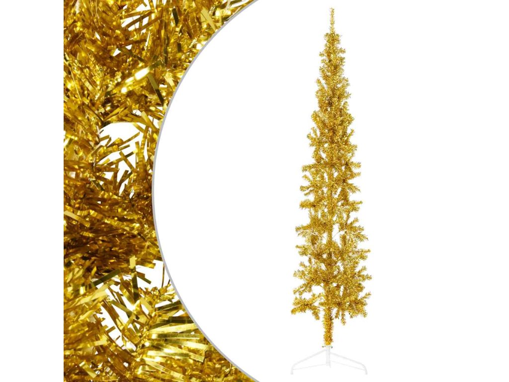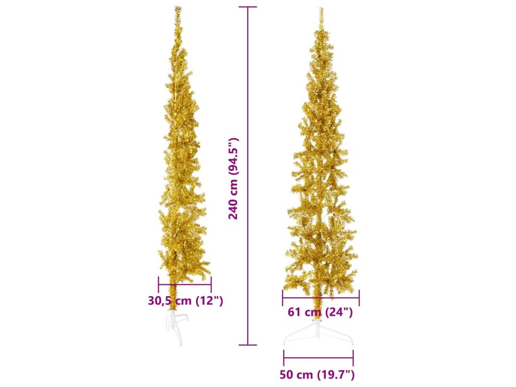 Úzký umělý poloviční vánoční stromek se stojanem zlatý 240 cm 344593