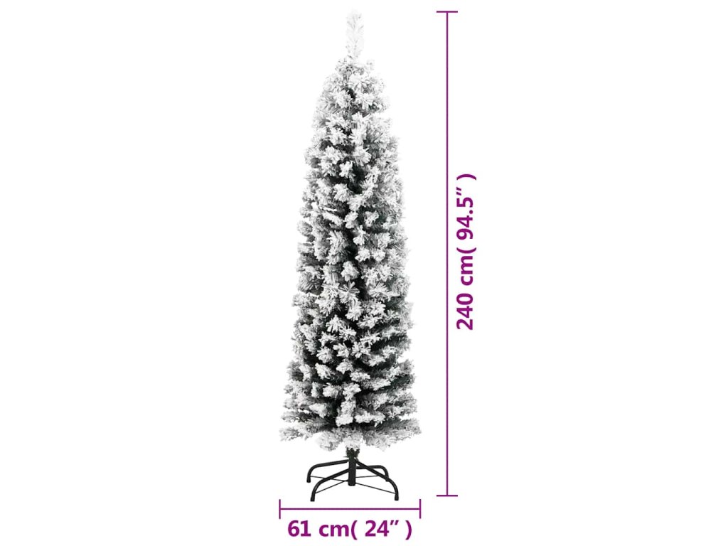 Úzký umělý vánoční stromek zasněžený zelený 240 cm PVC 320956