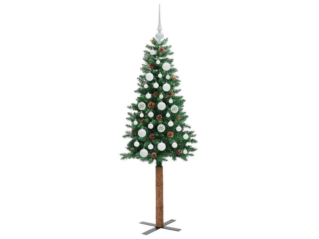 - Dekorativní s borovicovými šiškami a ozdobnými koulemi, realistické větvičky, skutečný dřevěný kmen