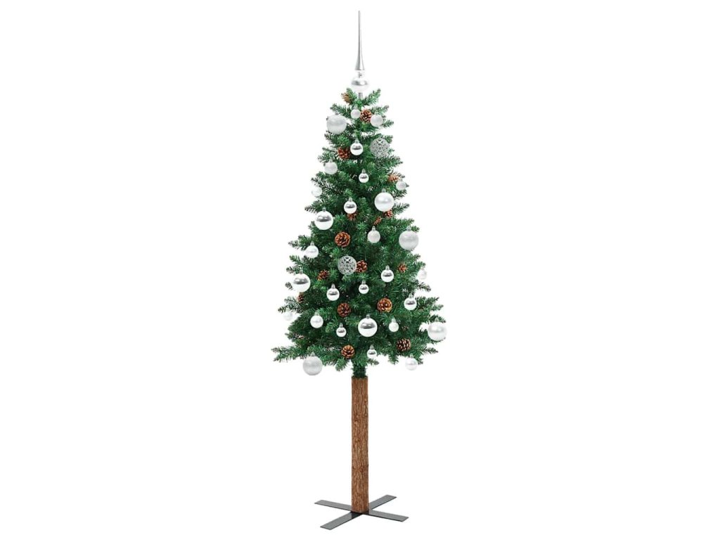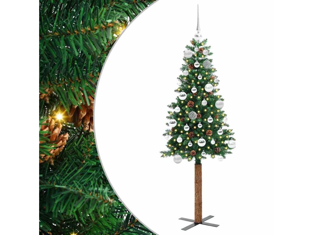 - Dekorativní s borovicovými šiškami a ozdobnými koulemi, realistické větvičky, skutečný dřevěný kmen