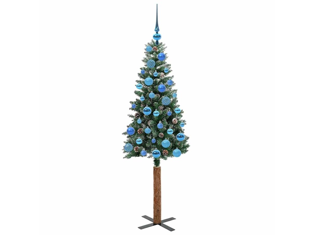 - Dekorační s borovicovými šiškami a ozdobnými koulemi, realistické větvičky s mraženým sněhem, skutečný dřevěný kmen