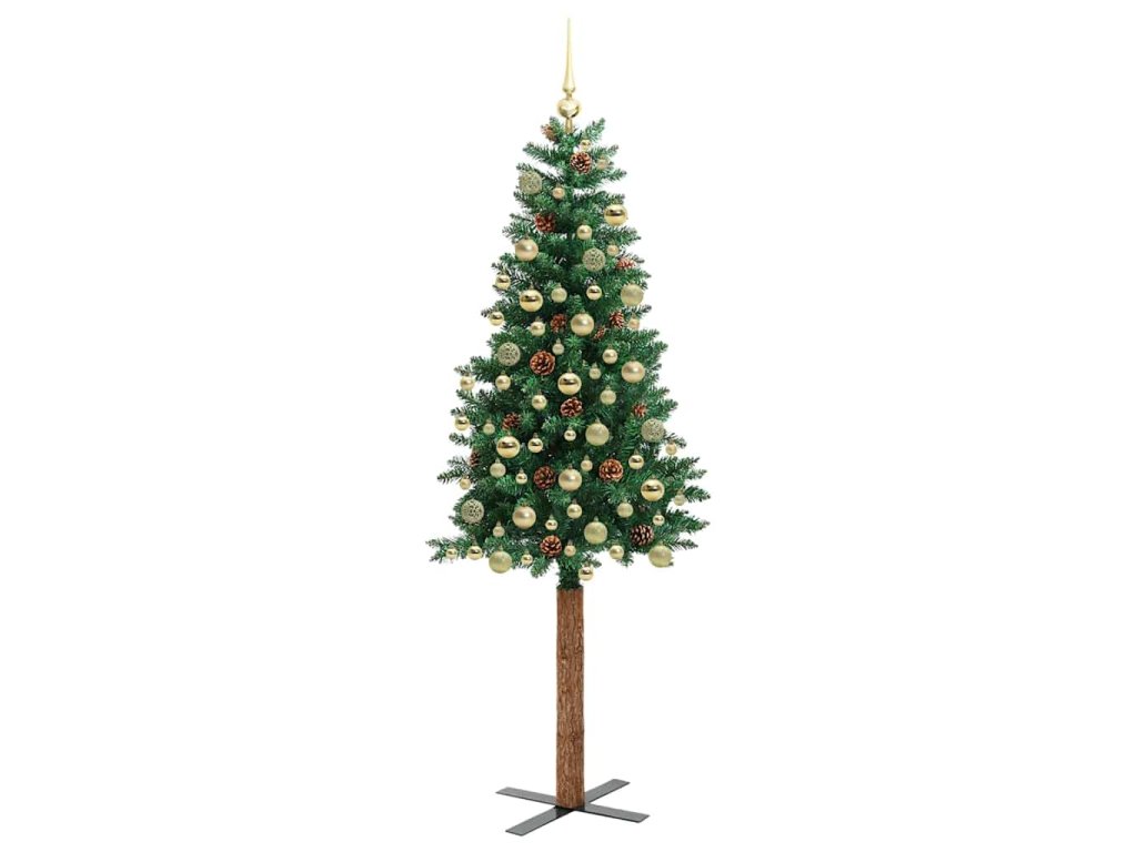 - Dekorativní s borovicovými šiškami a ozdobnými koulemi, realistické větvičky, skutečný dřevěný kmen