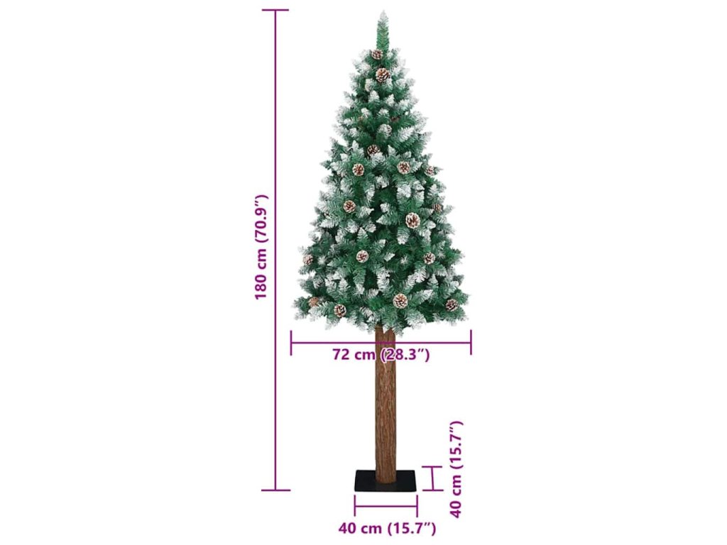 - Dekorativní s borovicovými šiškami, Realistické větve s mraženým sněhem, Skutečný dřevěný kmen