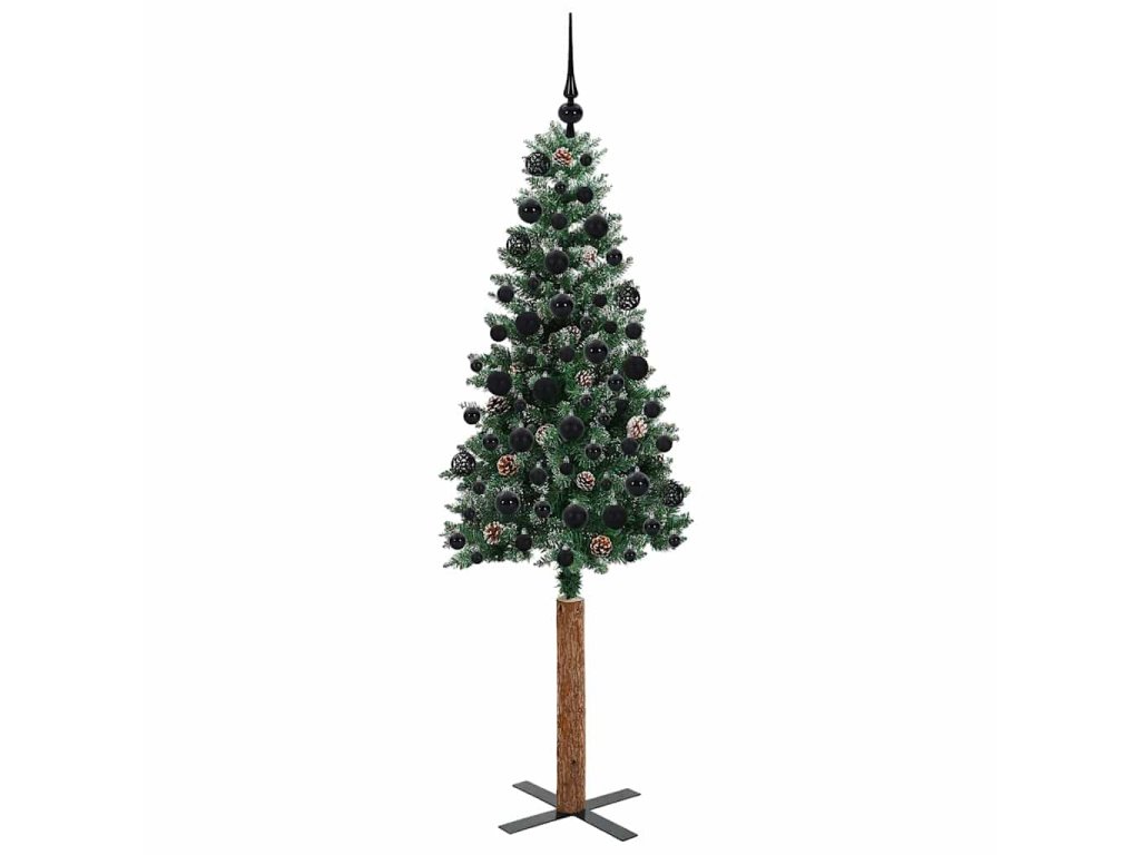 - Dekorační s borovicovými šiškami a ozdobnými koulemi, realistické větvičky s mraženým sněhem, skutečný dřevěný kmen