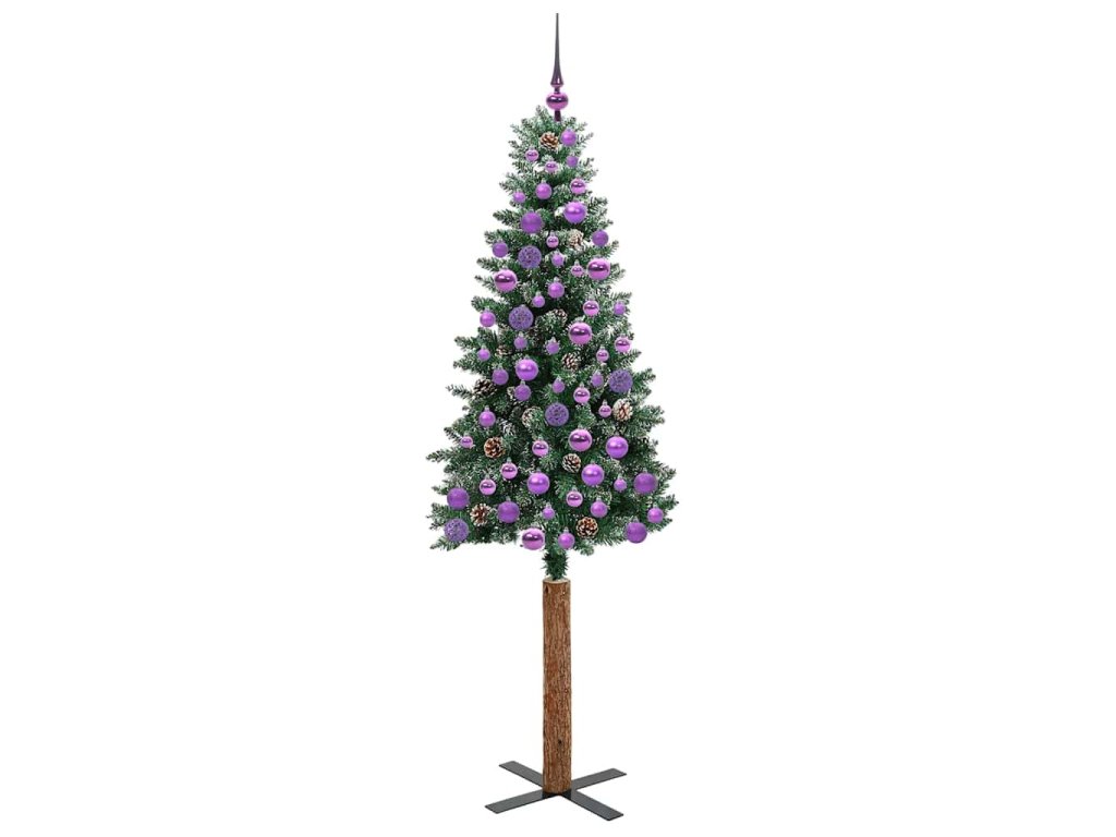 - Dekorační s borovicovými šiškami a ozdobnými koulemi, realistické větvičky s mraženým sněhem, skutečný dřevěný kmen