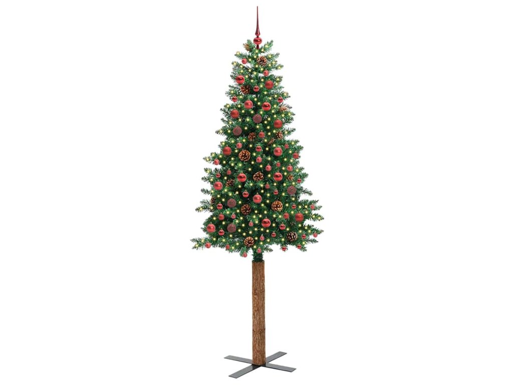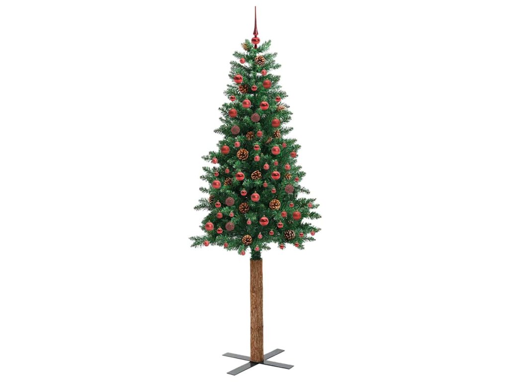- Dekorativní s borovicovými šiškami a ozdobnými koulemi, realistické větvičky, skutečný dřevěný kmen
