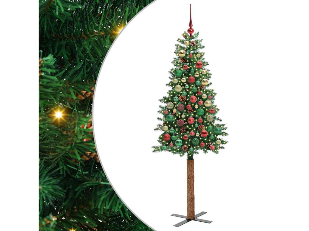 - Dekorativní s borovicovými šiškami a ozdobnými koulemi, realistické větvičky, skutečný dřevěný kmen