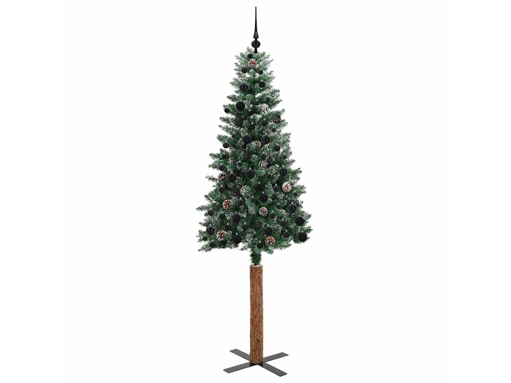 - Dekorační s borovicovými šiškami a ozdobnými koulemi, realistické větvičky s mraženým sněhem, skutečný dřevěný kmen