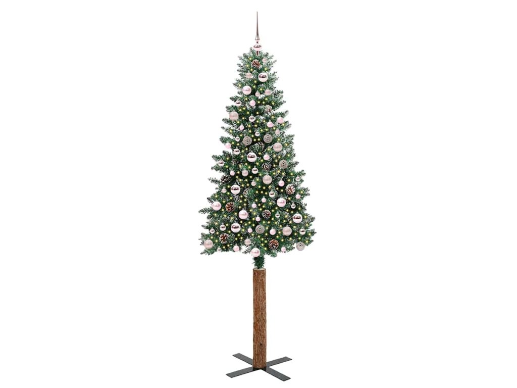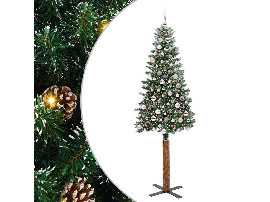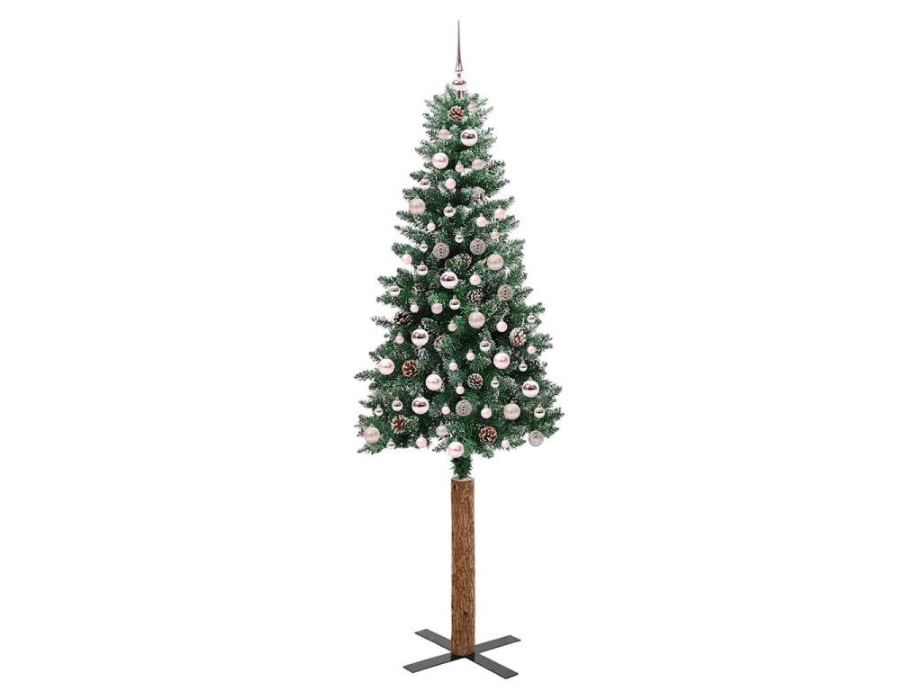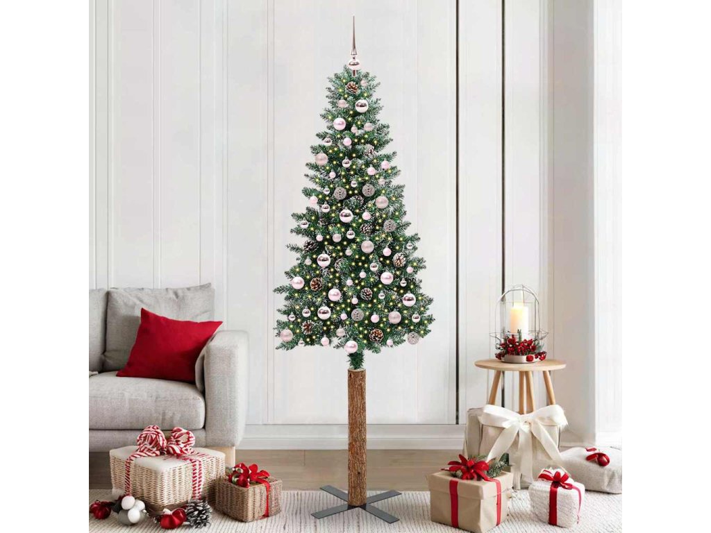- Dekorační s borovicovými šiškami a ozdobnými koulemi, realistické větvičky s mraženým sněhem, skutečný dřevěný kmen