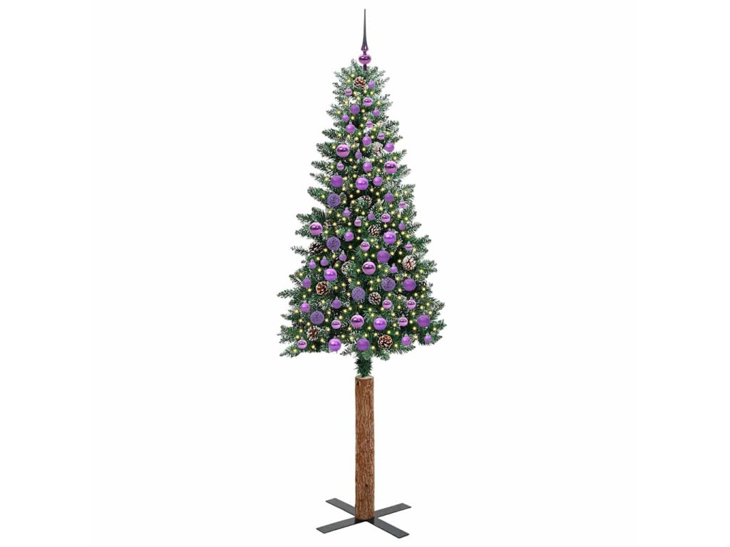 - Dekorační s borovicovými šiškami a ozdobnými koulemi, realistické větvičky s mraženým sněhem, skutečný dřevěný kmen