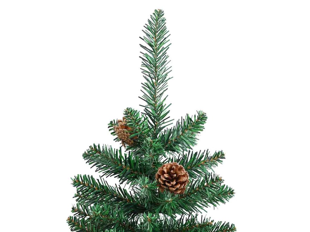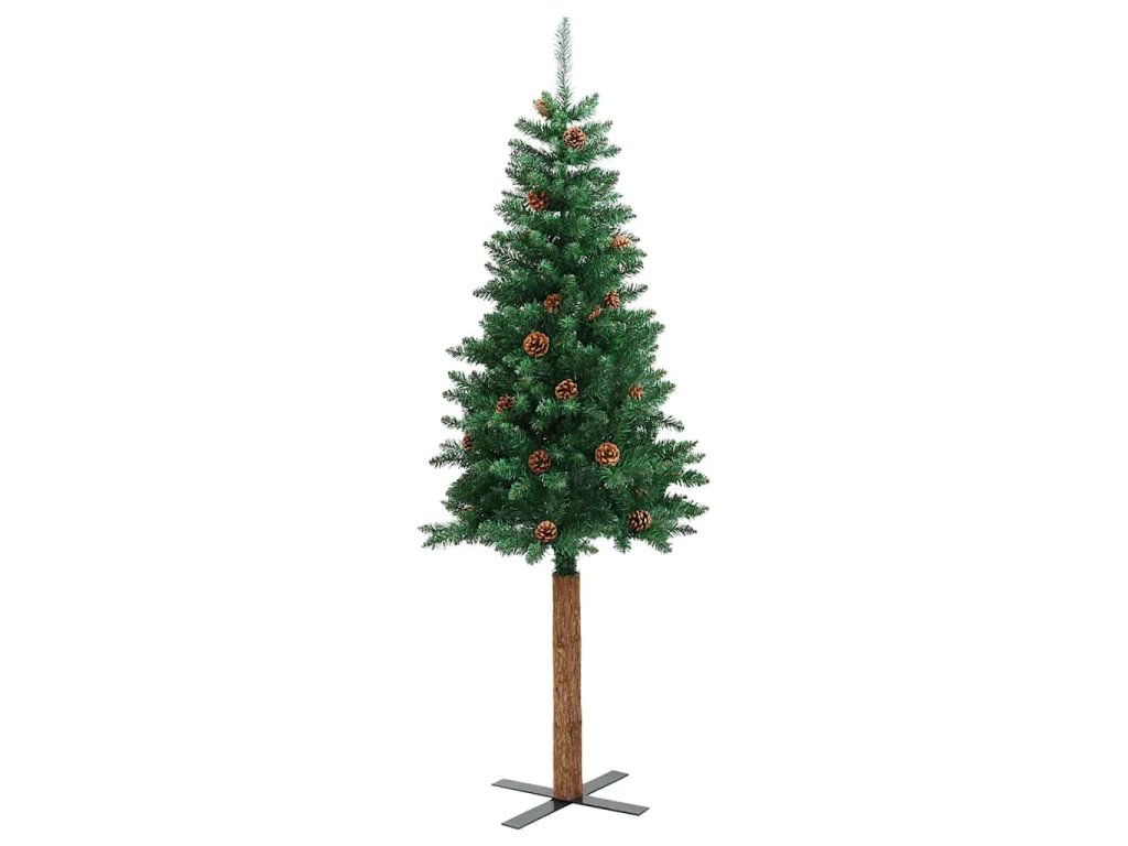 Úzký vánoční stromek pravé dřevo a šišky zelený 150 cm PVC 320957